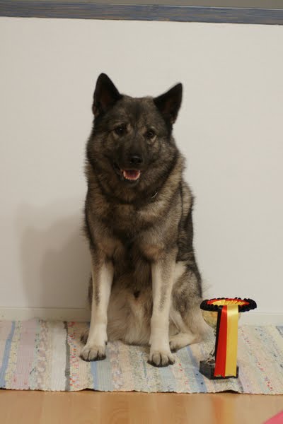 Käytiin myös eilen paikallisen 4H:n järjestämissä "4H 70v" pirskeissä esittämässä muutaman minuutin mittanen tokoesitys ja positiivista palautetta saatiin :) Sain myös koirankoulutustarjouksen mutta valitettavasti jouduin kieltäytymään välillä ilmenevän omienkin koirien treenausinnon puutteeseen vedoten. Niin ja mullehan tarjottiin myös vaihdossa Roopeen tätä samaista koulutusta kaipaavaa koiraa :D Mutta eei, ei mun aivokääpiö hieno tokoeläinhirvikoira taida lähteä.